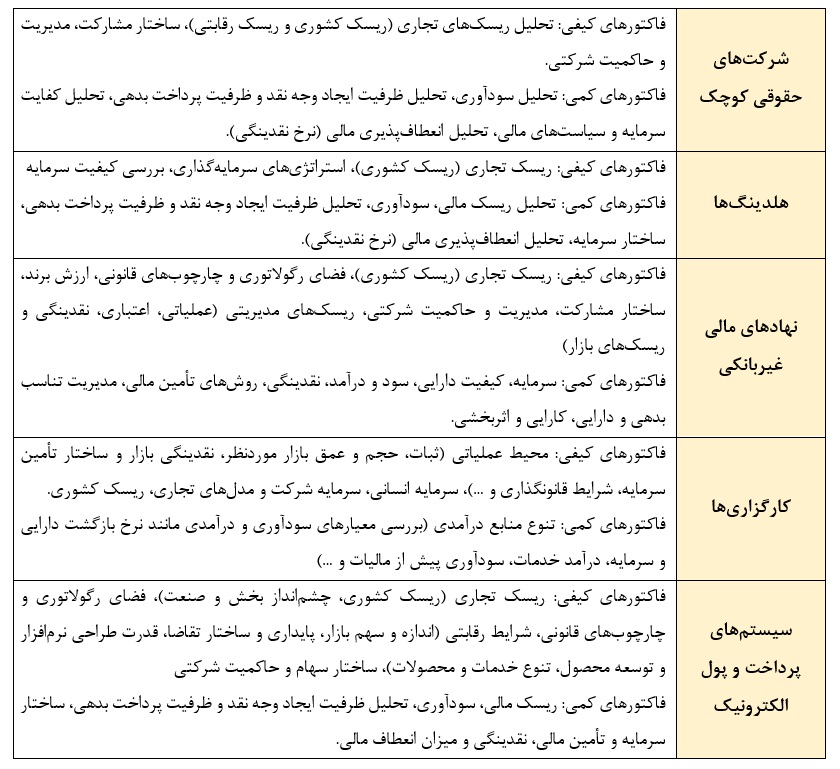 در ادامه و در جدول زیر، فاکتورهایی که برای رتبهبندی تعدادی از شرکتها مورد توجه و ارزیابی قرار میگیرد، آورده شده است: