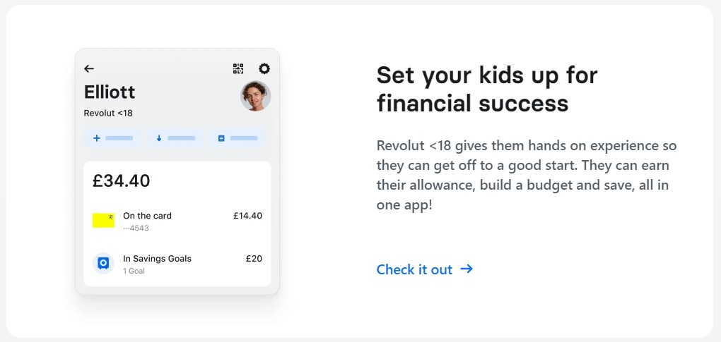 - امکان تخصیص حساب Revolut Junior به یک کودک