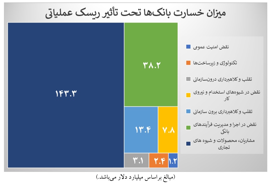زیانهای ناشی از ریسک عملیاتی میتواند فاجعهبار باشد، نه فقط از لحاظ پولی، بلکه از نظر تأثیر بر تجارت و شهرت کلی بانک، که گاهی موجودیت آن را تهدید میکند. در سالهای اخیر، بانکها در سرتاسر جهان درگیر مشکلاتی بودهاند که ناشی از عدم کنترل ریسک عملیاتی است. از سال 2011 تا 2016، بانکهای بزرگ نزدیک به 210 میلیارد دلار از ریسک عملیاتی متحمل زیان شدند. همانطور که در شکل زیر مشاهده میشود، بیشتر این ضررها ناشی از اشتباهات قابل پیشگیری در هنگام تعامل کارکنان و سیستمها با مشتریان، نقص در نحوه پردازش تراکنشها یا کلاهبرداری آشکار است.
