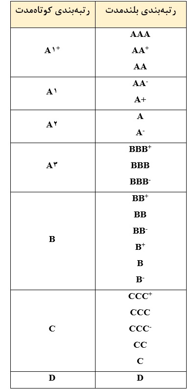 1- رتبهبندی اوراق تجاری و یا کوتاهمدت: رتبهبندی «اوراق تجاری» یا «کوتاهمدت» به تعهداتی اطلاق میشود که در بازارهای مربوطه، کوتاهمدت تلقی میشوند. در واقع به معنای تعهداتی است که سررسید اصلی آنها بیش از 365 روز نیست. اگر بدهی کوتاهمدت خالص در مقایسه با سرمایه بازار ناشر حداقل باشد، رتبهبندی کوتاهمدت به سمت بالا تعدیل میشود تا منعکسکننده این باور باشد که ریسک کاهش مییابد. به بدهیهای میانمدت رتبههای بلندمدت داده میشود.